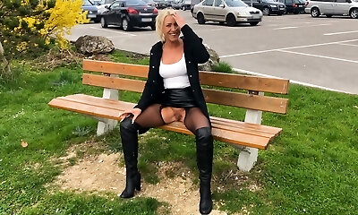 Horny Blond Mature Woman Takes Off Sundress And Masturbates In Her Seamless Tan stocking