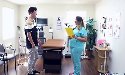 The nurse Fucks with marvelous in front of him and jiggles huge milkings...