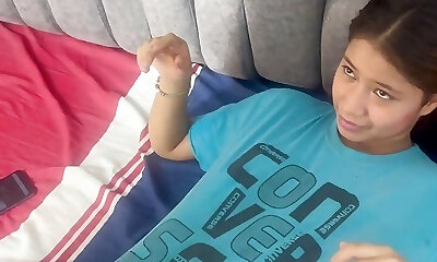 Step-dad fucks asian schoolgirl while she talks to his boyfriend on the phone
