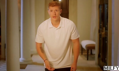 Russian milf boss catches horny babysitter masturbating