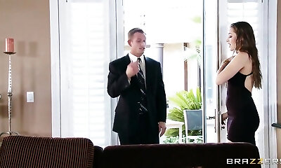 火热的黑发女孩绷紧的海狸角质按摩师安吉丽娜被她可怕的Spunk-pump客户砸了高潮