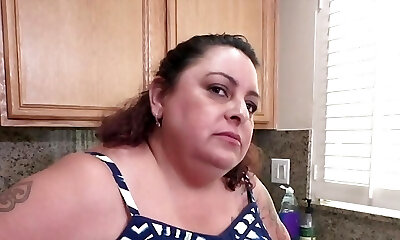 德国巨大的肥胖成熟妈妈与巨大的乐趣袋犁在厨房