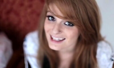 Ginger-haired with fabulous curves treats man with super-cute blowjob on Xmas eve