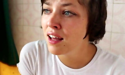情绪少女显示她的山药大小的水罐上凸轮