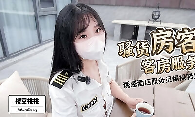 客房服务的荡妇管家!引诱酒店服务员在没有避孕套的情况下让她的阴部得到肯定!