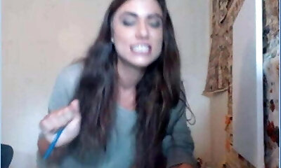 Lukerya钩编了一件迷人的渔网连衣裙和长袜,并在凸轮上与奉献者调情,撩拨和迷人他们的