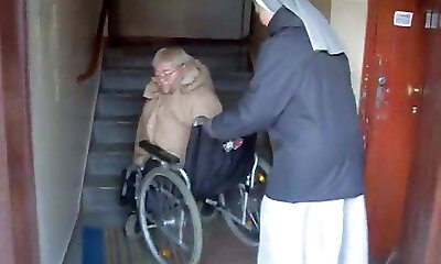 祖母在地板上伸展双腿,在4K中操她的娘们