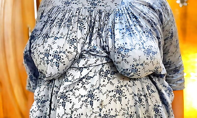 70岁胖胖的奶奶感到孤独和角质。 大胸部和毛茸茸的小猫! 肥屁股。