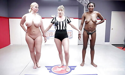 Alura简森粉碎竞争对手在奶头在裸体摔跤